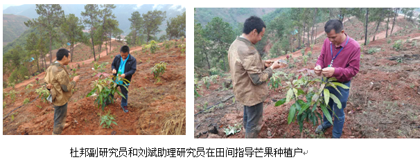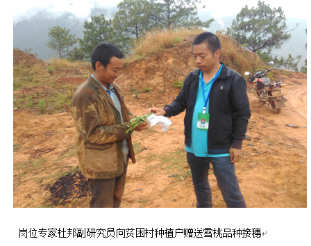 2017年5月16日,攀西特色水果创新团队新品种引育岗位专家、攀枝花市农林科学研究院科技特派员杜邦副研究员和刘斌助理研究员一行2人,到鱤渔乡小石洼村开展科技特派员精准扶贫工作。应贫困村农户杨兵对雪桃栽培的需要,专家为杨兵推荐了攀枝花适栽的优质雪桃品种,并赠送雪桃接穗。专家们还冒雨深入小石洼村芒果种植区了解芒果种植情况,该村海拔较低的地方正在发展芒果产业,部分果农已定植了实生苗,在品种选择、栽培管理、病虫害防控技术等方面比较欠缺,杜邦和刘斌两人在李发军芒果园对其存在的问题进行了详细解答,并初步筛选出2-3户果农为示范户作为技术帮扶对象,为后期实施科技精准扶贫产业工作奠定坚实基础。
