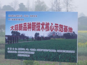 四川创新团队“蔬菜品种选育与引进协作岗位”围绕目标任务,在前几年,在彭州蔬菜产业基地县隆丰镇建立了50亩核心示范基地,今年又辐射带动葛仙山镇约50亩,主要示范种植了课题组自育的以成蒜早3号为代表的“成蒜早”系列品种和课题组研究集成的大蒜高产高效生产技术,包括配方施肥技术、看苗追肥、稻蒜轮作、叶枯病的防治、苗后除草等。