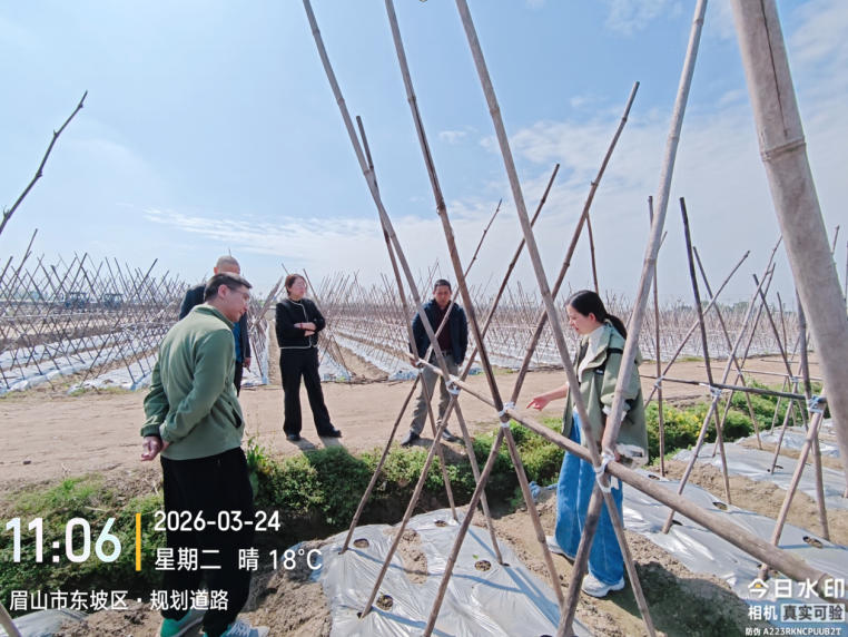 2026年3月24日,四川大宗蔬菜创新团队豇豆育种岗位专家向娟、成员苏仕林,在眉山市东坡区经济作物站站长罗红萍的带领下,前往眉山市东坡区开展豇豆生产技术指导服务。
