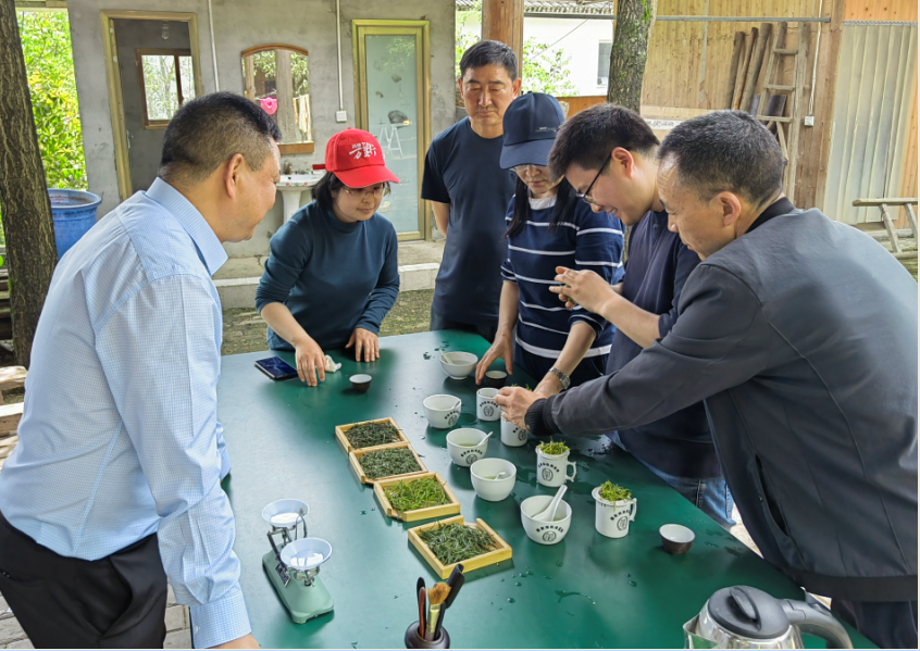团队一行还在当地农业农村局茶产业中心、茶业协会相关同志陪同下先后调研了羌山雀舌茶叶公司、鼓羌家庭农场以及禹露茶叶有限公司,团队一行对茶企生产的绿茶、红茶进行了感官审评,对其中存在的问题提出了改进建议。