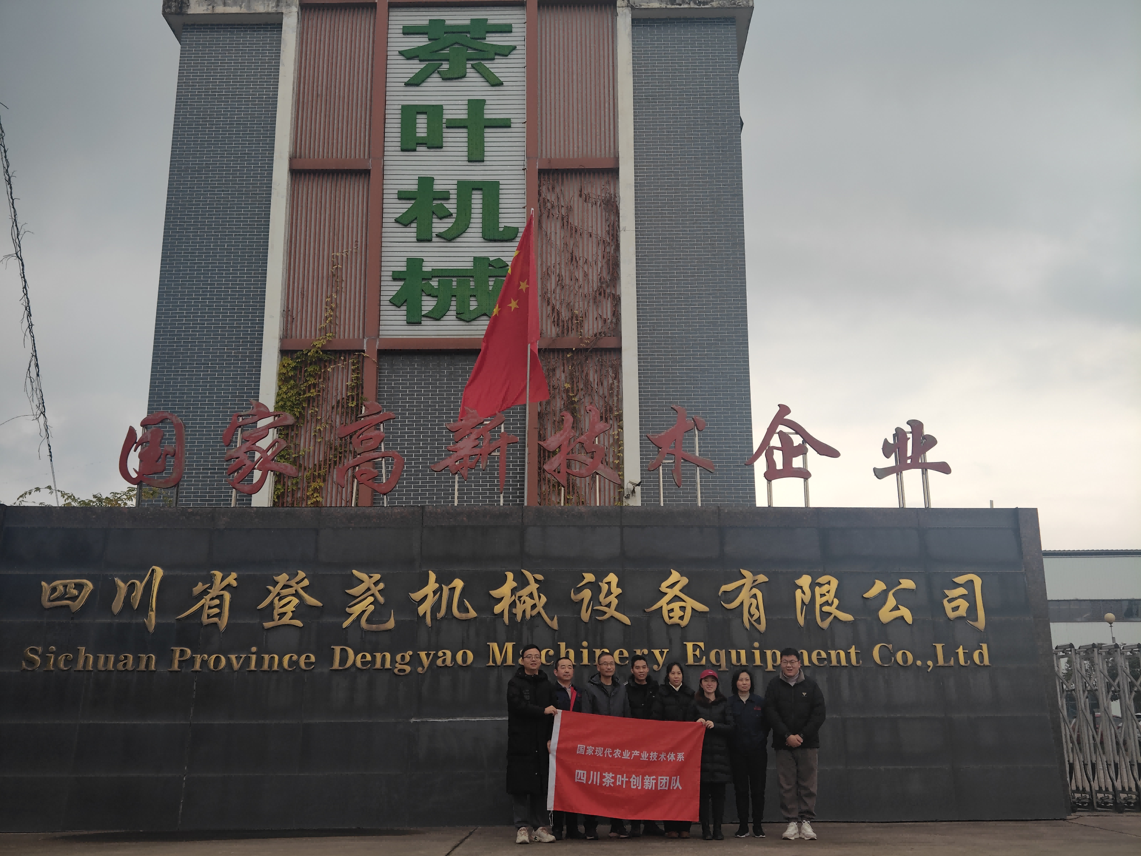 2024年12月13日,茶叶机械化技术应用岗位专家邓佳和团队成员周彦君、农机专家蒋立茂研究员等一行前往眉山市洪雅县中山镇前锋村的雅雨露茶业有限责任公司,就茶叶机械化生产技术及黄家山茶园机械化示范基地建设进行了交流。