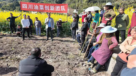 在油菜春管关键时期,专家团队先后深入长宁县龙头镇、硐底镇、花滩镇,叙州区赵场、柏溪等5个乡镇12个村社,针对绿色防控技术应用不足、迟播抗逆管理经验欠缺等生产痛点,采取“集中授课+田间指导”相结合的方式,开展油菜春季管理技术培训。培训系统讲解了花期“一促四防”(防病、防虫、防早衰、防花而不实,促生长)、水肥管理、花期施药等关键技术,为油菜稳产增产提供技术支撑。授课结束后,专家带领农户走进田间,针对生产实际问题“把脉问诊”,用通俗易懂的语言剖析病因,并提出针对性解决措施,让农户能懂会用。“专家讲得很及时!以前花期打药全凭老经验,现在知道了要选对药剂、用对时机,特别是提醒了保护蜜蜂的重要性,科学种田确实不一样。通过培训,学到了不少油菜种植管理知识,实现稳产增产更有信心了。”一位种植大户表示。