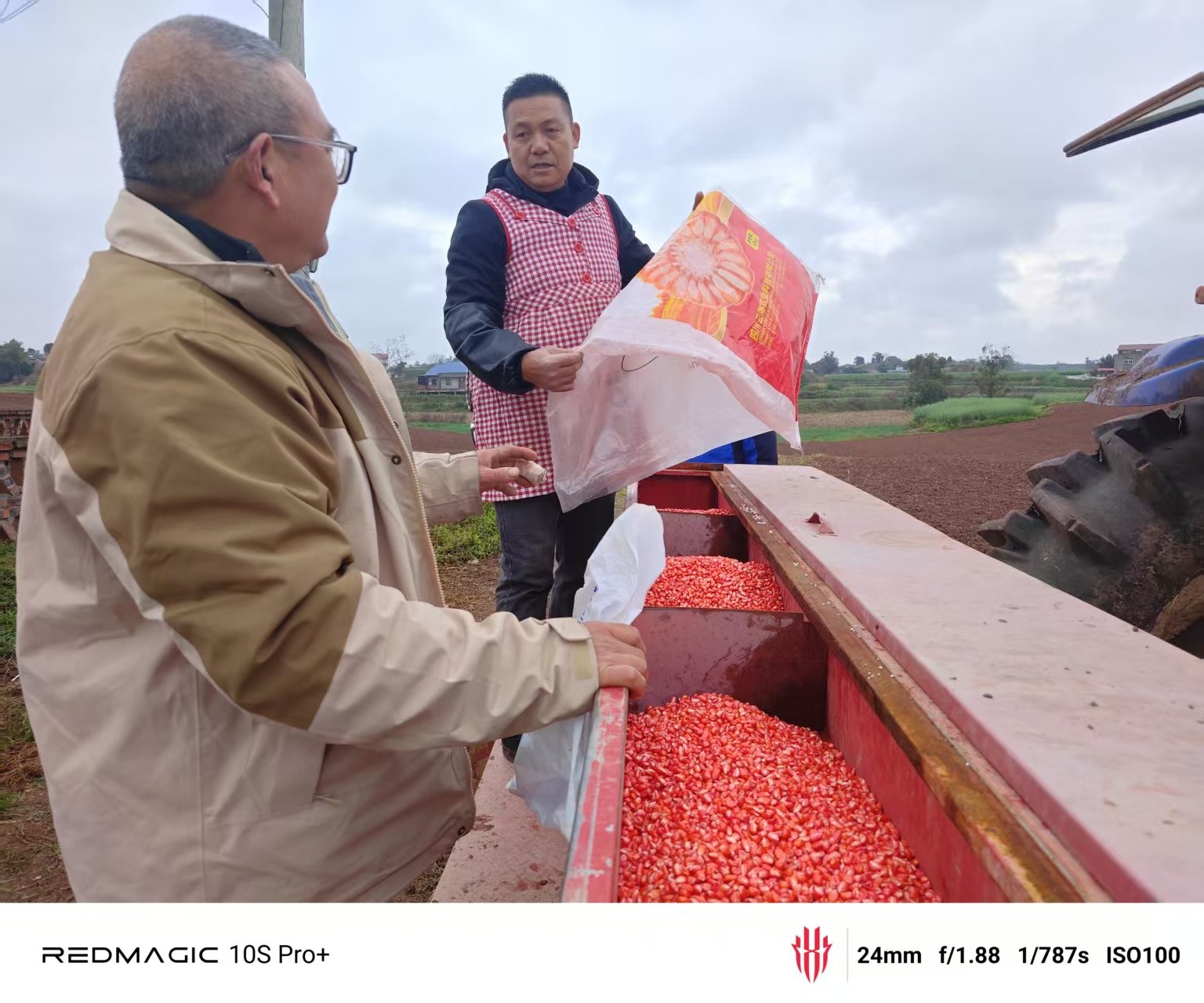 为进一步提升县域玉米种植产量,推动玉米产业提质增效,切实筑牢粮食安全防线、促进农民增收致富,3月17日,受资中县农业农村局邀请,内江市农科院汪仁全副院长带领玉米所专家团队,前往公民镇开展玉米百亩高产攻关示范片机械化播种技术指导工作,并为当地农户送去了优质玉米良种。