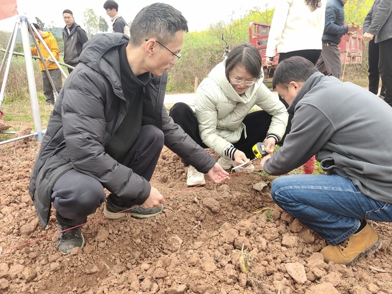 3月19日,四川玉米创新团队成员、省农科院作物所杨麟副研究员与罗平助理研究员一行,前往资阳市雁江区丹山镇顺家村,开展百亩玉米高产示范片建设工作,并为当地村民开展成单372品种现场种植技术培训,全力助力当地春玉米单产提升,攻关亩产800公斤以上目标。