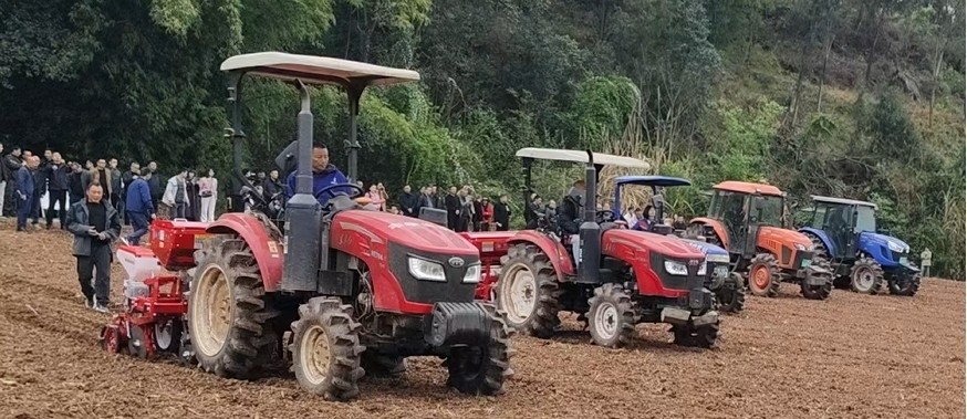 2026 年 3 月 20 日,豆类机械化生产技术岗位专家四川农业大学教授吕小荣、张黎骅及团队,联合中国农业大学、雷沃重工、农哈哈企业相关负责人及遂宁相关领导,赴遂宁安居区石洞镇开展大豆玉米复合种植播种装备现场演示培训会,参训人员120余人。播种示范现场组织5台丘区豆玉带状复合种植专用播种机开展田间作业演示,集中展示这些机型集成的新装备、新技术与新成果。专家团队面对面为种植户讲解机械操作要领、参数调试及管护技巧,现场解答技术难题,帮助参训人员直观掌握农机使用与种植管理技能,切实提升区域大豆玉米复合种植播种作业水平,为粮食稳产增收奠定坚实基础。