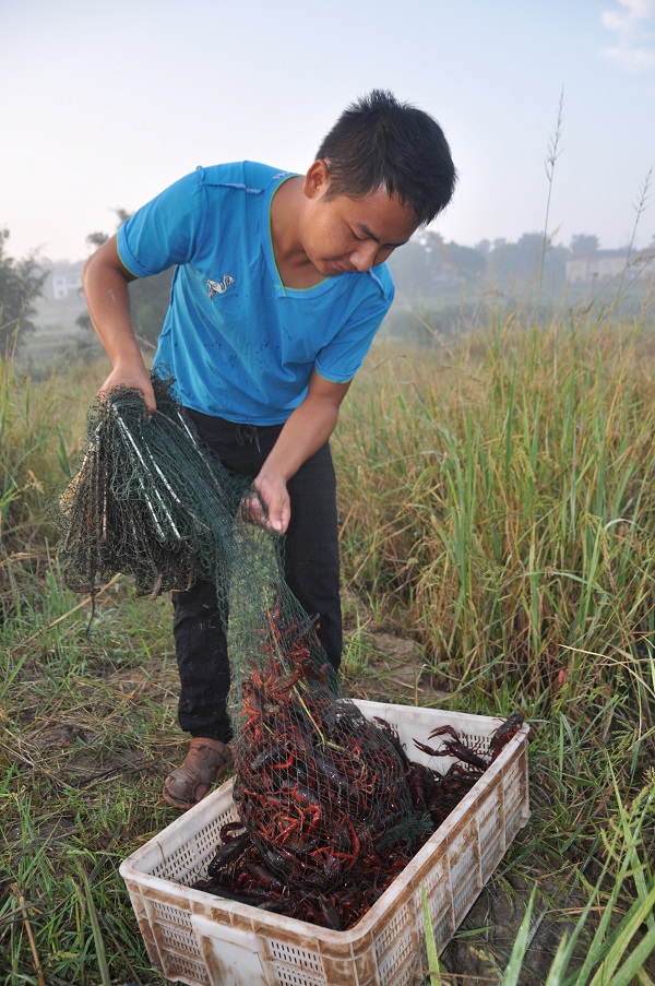 今年26岁的苟礼彬去年下半年流转了40亩稻田,开始了他的稻虾养殖之路。 “当时是以500元一亩的价钱流转的,花了2万元,不到半年就赚回了本钱。”苟礼彬告诉笔者,他今年收获4万多斤谷子,同时卖了两个季的虾,纯收入达到了22万元。