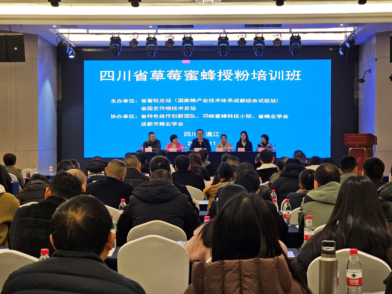 为切实提高我省草莓蜜蜂授粉技术水平,促进蜂产业与草莓产业协同发展,2024年11月29日,由四川省畜牧总站(国家蜂产业技术体系成都综合试验站)、四川省园艺技术推广总站主办,四川省特色经作创新团队(草莓岗位、蜜蜂岗位)等单位协办的“四川省草莓蜜蜂培训会”在温江举办。参加会议的是全省各市(州)蜂产业、草莓产业农业技术推广人员及相关合作社、养蜂大户、草莓种植大户等100余人。