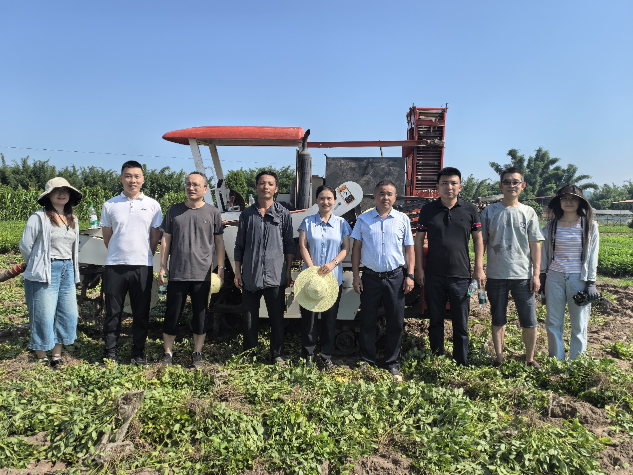 专家团队先后考察了宜宾市翠屏区永兴镇、叙州区蕨溪镇和观音镇、自贡市贡井区五宝镇、资中县重龙镇等花生主要产区,调查了花生田间长势、病虫草害发生、收获方式及市场价格等情况。宜宾市花生产业近年呈现出良好的发展态势,2025年仅叙州区花生种植面积达15.6万亩,主要以早熟鲜食为主,亩产效益高达4000元。全区通过培育新型经营主体发挥示范带动作用、开展订单生产保障农户种植效益等形式,加大天府系列、蜀花系列、远杂系列等优质、高产花生品种的推广,积极响应国家花生“一扩两提”行动。