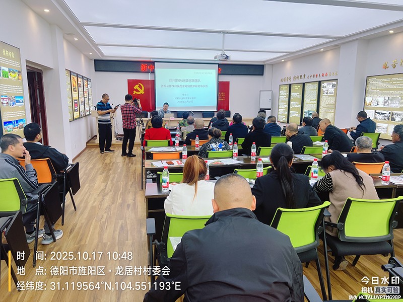 2025年10月17日上午,应德阳市旌阳区农业农村局邀请,四川特色蔬菜创新团队苦瓜品种改良及配套栽培技术研究与示范岗位专家练华山教授,到德阳市旌阳区新中镇龙居村开展苦瓜绿色高效栽培技术培训。旌阳区农业农村局高级农艺师吴志广、新中镇基层农技人员及蔬菜种植户44人参加了培训会。