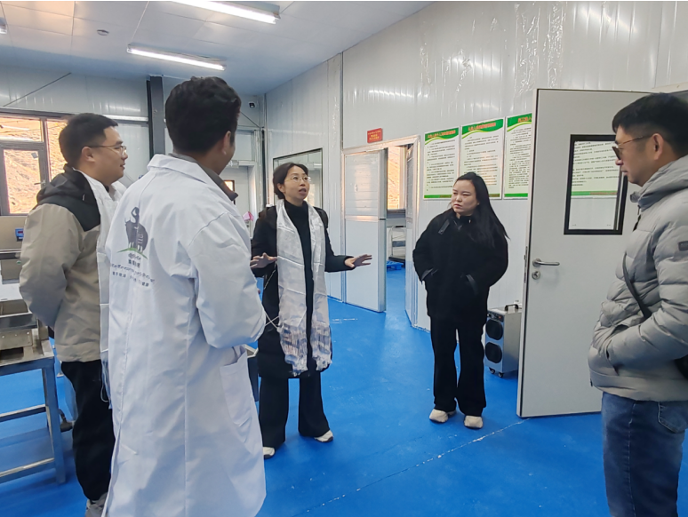 除易军研究员到过甘孜州少部分县(市)外,王成教授、敖晓琳副教授、吴周林博士、赵阳博士都没去过。大家在有说有笑的行程中,一边浏览车外草甸上的牦牛,一边向黄波副所长了解情况,虽然心里担心出现高原反映。按照甘孜藏族自治州牦牛产业联合会拟定的行程,大家实地考察了炉霍县华奕养殖有限公司、炉霍县鲜水金谷现代农业发展有限公司、炉霍县鸿通食品有限公司、炉霍县珠穆偌偌畜产品有限公司、炉霍康巴圣德牦牛产业有限公司、炉霍鲁川农业发展有限公司、甘孜县康巴拉绿色食品有限公司、甘孜县斯俄乡雪山牦牛养殖销售农民专业合作社、四川康康高原食品开发有限公司、色达县牛满园养殖有限公司、甘孜州色达县藏源曌美乳制品有限责任公司等企业,参观了甘孜县拖坝牦牛现代农业园区(生态牦牛可视化交易中心、饲草饲料加工中心)、色达县牦牛现代农业园区,大家以答题人身份与出题人(企业负责人、技术总监)面对面进行了交流,回答了企业的技术需求。在四川康康高原食品开发有限公司“牦牛肉罐头生产封盖后,表面边缘容易生锈”提的技术需求上,敖晓琳副教授一见到该公司董事长雷华利,就告知她认为的三点原因: 一是边缘有油脂,没有擦干净,或者少量油脂渗漏;二是边缘磨损,保护层被擦掉;三是存放环境和销售环境温差大引起表面有水渍,从而生锈。只要知道了原因,解决方法也就一目了然了。