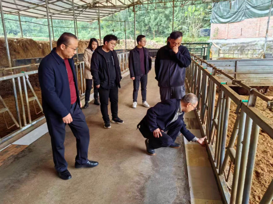 调研团队以科技特派员身份,依托中央“三区”科技人才支持计划,深入基层一线,聚焦农户圈舍设计要点和关键养殖技术难题开展现场指导。围绕“盆周山区肉牛生产降本增效关键技术集成转化应用”项目,团队系统考察了两地在饲草种植、本地化秸秆收储加工、饲料生产、肉牛良种繁育、健康养殖、粪污资源化利用等全产业链环节的实施情况,为企业提供战略发展建议,并与地方畜牧技术人员深入交流,共同探讨适合盆周山区特点的肉牛产业发展路径。