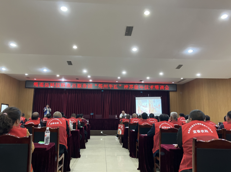 为了将科学技术真正转化为养殖户的生产力,四川肉牛创新团队岗位专家贾先波还为筠连县肉牛养殖业主、繁殖员和兽医师等100余人开展了2场专题技术培训。培训内容紧扣肉牛遗传育种与品种改良的前沿技术与实用方法,通过深入浅出的讲解,有效提升了参会人员对川南山地黄牛等我国优秀肉牛遗传资源的认识、品种改良的专业技能和肉牛的科学养殖水平。