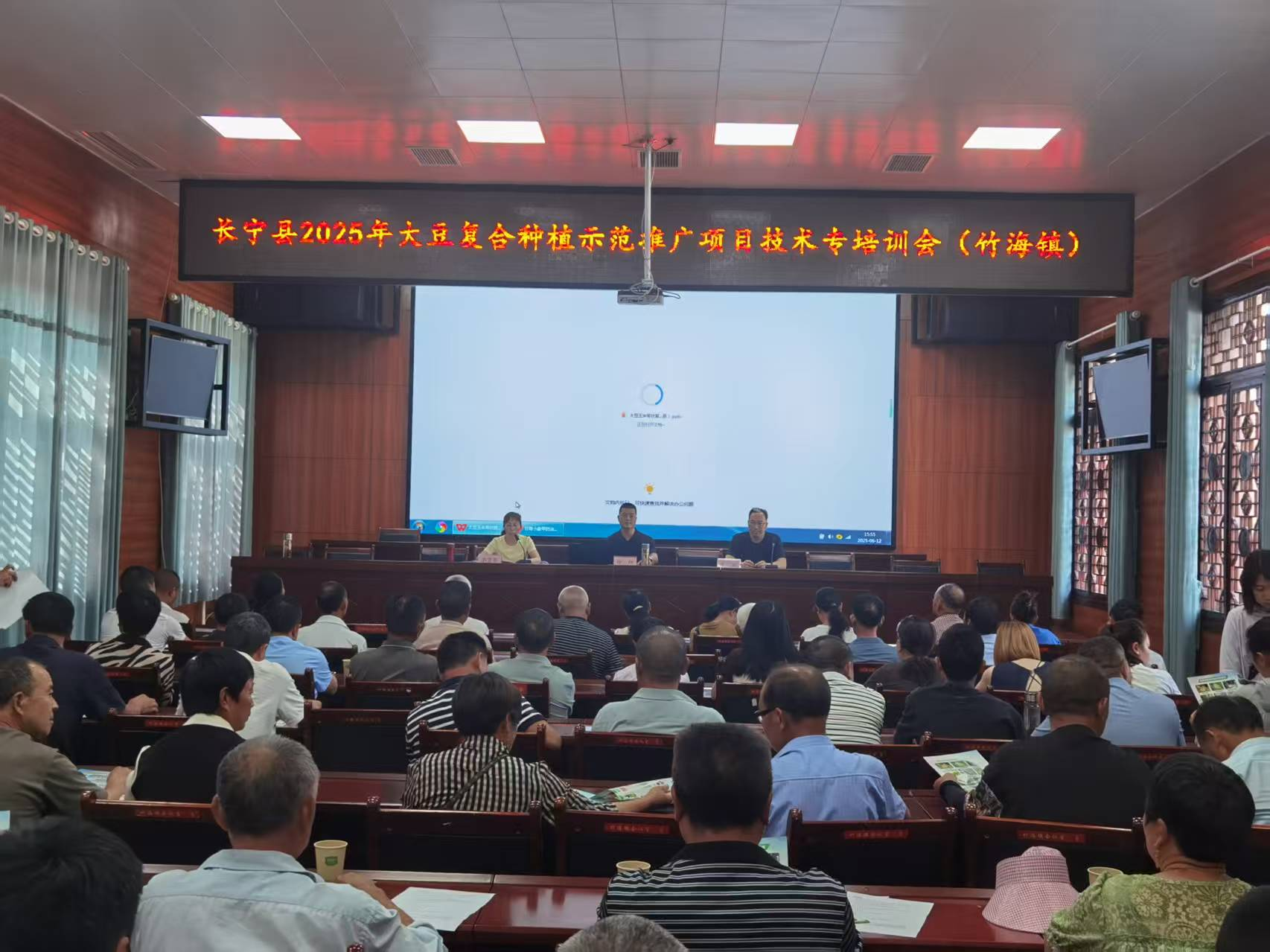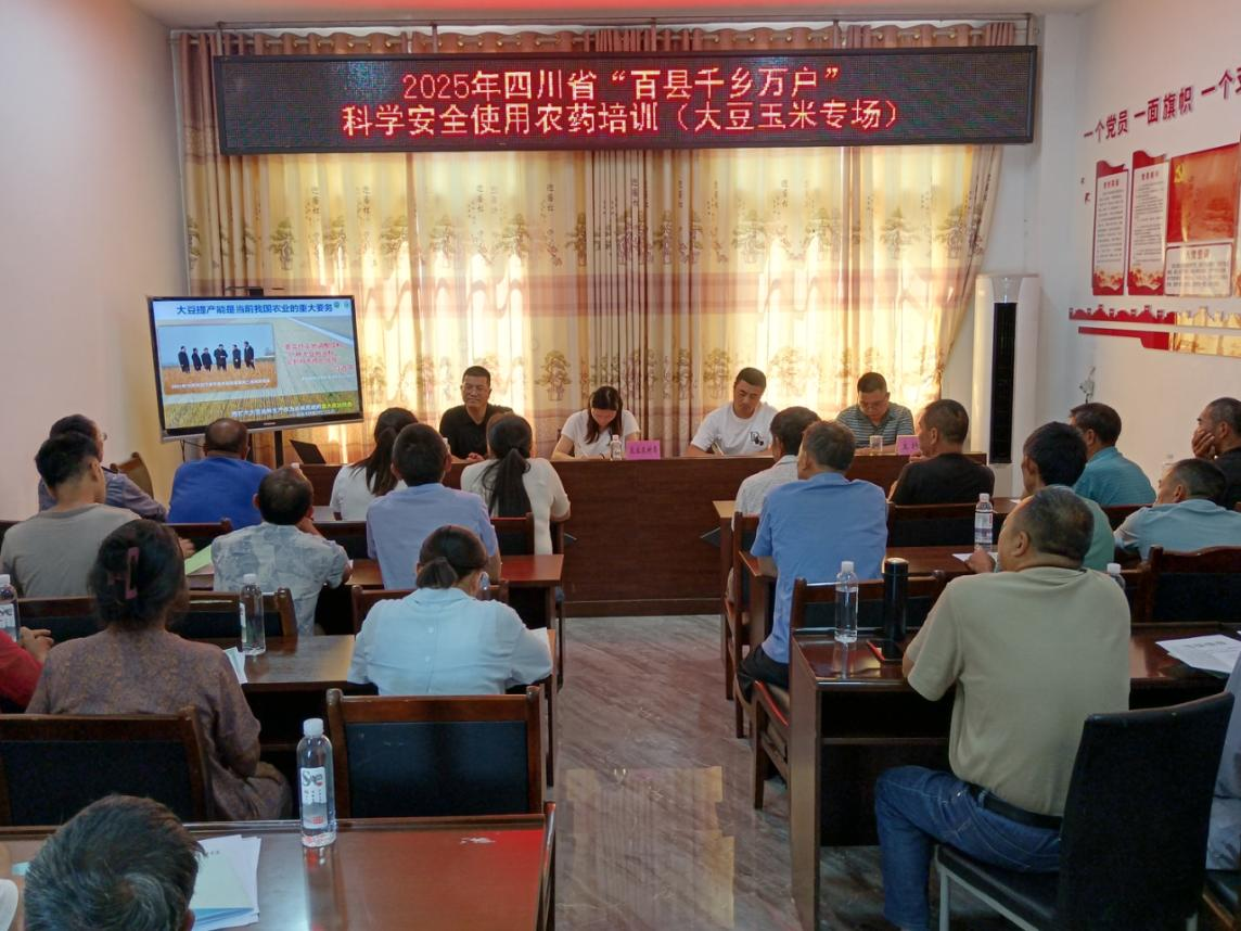 四川省大豆创新团队大豆间套作病虫草害防控岗位专家徐翔正高级农艺师受遂宁市安居区农业农村局邀请,于5月28日对该区农业农村局相关业务干部、乡镇农技干部、大豆种植大户等共计60余人开展了大豆玉米带状复合种植病虫害绿色防控技术培训。徐翔从我省大豆主要病虫害入手,系统讲解了地下害虫、根腐病、点蜂缘蝽、豆荚螟、大豆锈病、炭疽病等病虫害危害特征和识别方法,着重讲解了各项绿色防控技术措施以及科学安全用药技术。针对近年大豆部分病虫害呈现出的加重趋势,岗位专家深入解析了当前大豆间套作病虫草害防治的难点与对策,强调“预防为主、防早防小”是关键,建议通过各项绿色防控措施的综合施策控制田间病虫草害的发生危害。