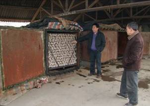 二、降湿:加强通风透气,巷道撒石灰,内棚四周的排水沟要通畅,能自然排水。