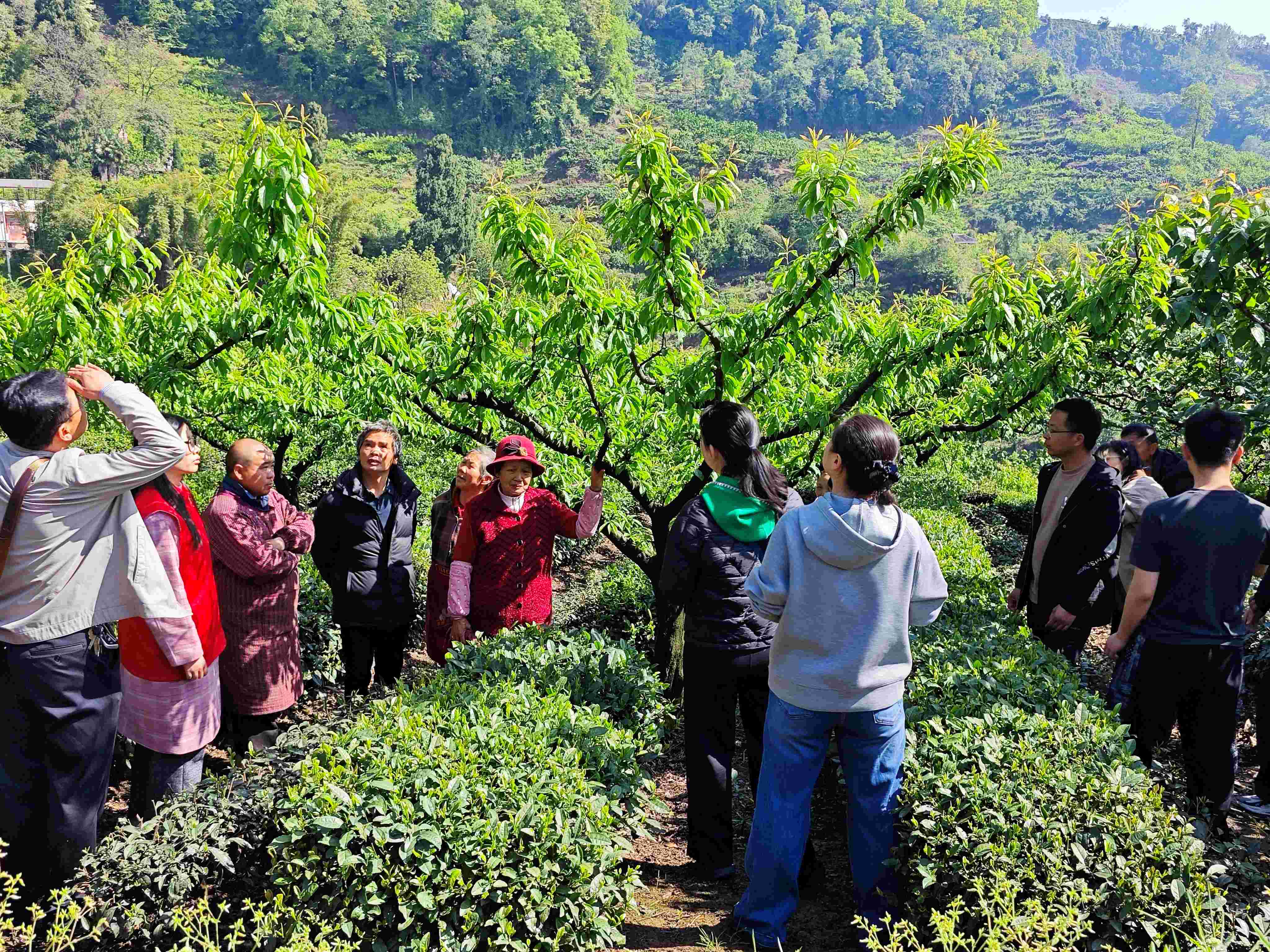 两位专家带领团队研究生实地查看了李的生长态势、挂果情况及果园综合管理水平。廖玲博士针对李子疏果和肥水管理进行了讲解。她指出,科学疏果是提升果实商品率的关键环节,必须根据树势、枝组及负载能力合理确定留果量,同时结合春梢生长与果实发育规律合理施肥。蒋春先教授聚焦病虫害绿色防控,现场识别了基地内可能发生的病害早期症状及害虫活动痕迹,她特别强调,当前要重点监测蚜虫、红蜘蛛及细菌性穿孔病等主要病虫害,抓住关键防治窗口,优先使用高效低毒农药及天敌友好型药剂,减少化学农药使用次数。