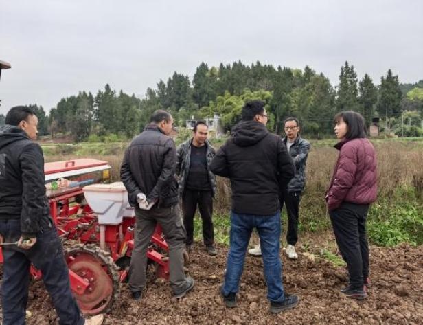 为深入推进农业机械化高质量发展,助力粮食生产提质增效、稳产增收,2026年3月21-22日,省创新团队豆类机械化生产技术岗位专家四川农业大学吕小荣教授前往资阳乐至县劳动镇,开展大豆玉米带状复合种植春播机械化技术指导。