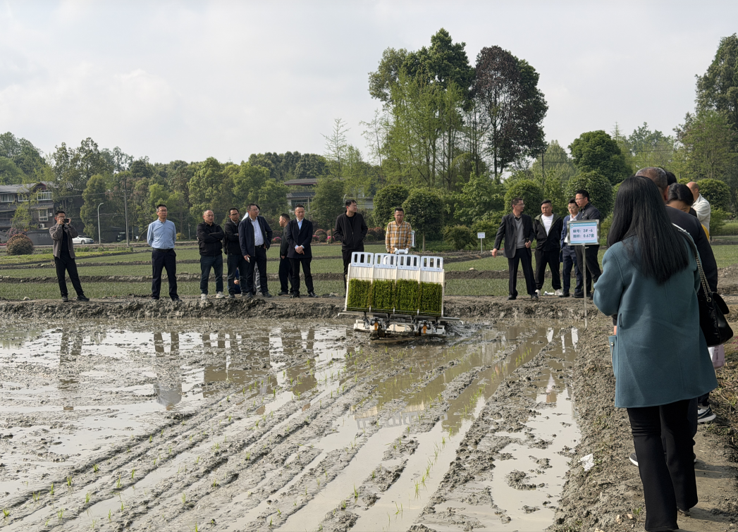 2026年4月2日,水稻机械化岗位专家周小波带领团队在成都市郫都区友爱镇开展插秧机样机现场试验示范,地方农机推广人员、农机企业代表、农业专业合作社负责人等30余人齐聚现场,观摩试验过程、交流技术经验。